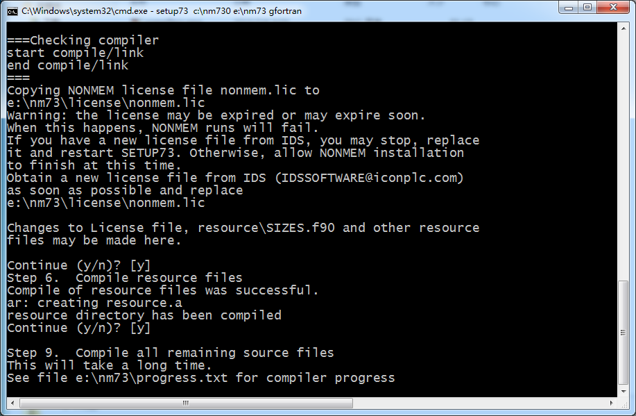 SETUP74 c:\nm744CD e:\nm744 gfortran